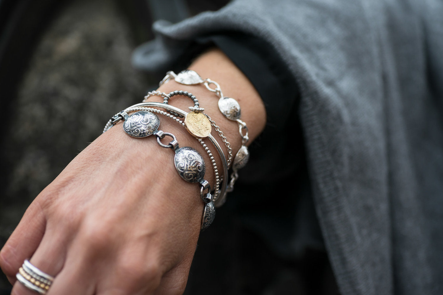 De vackra detaljrika mönster som finns på varje Coin påminner om en historia då de en gång i tiden hade ett värde som mynt. Idag får de nytt liv i vackra smycken som skänker glädje och inre rikedom.